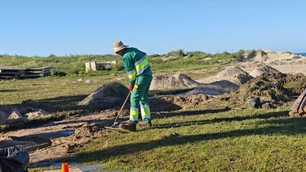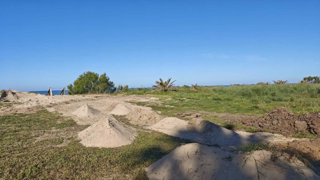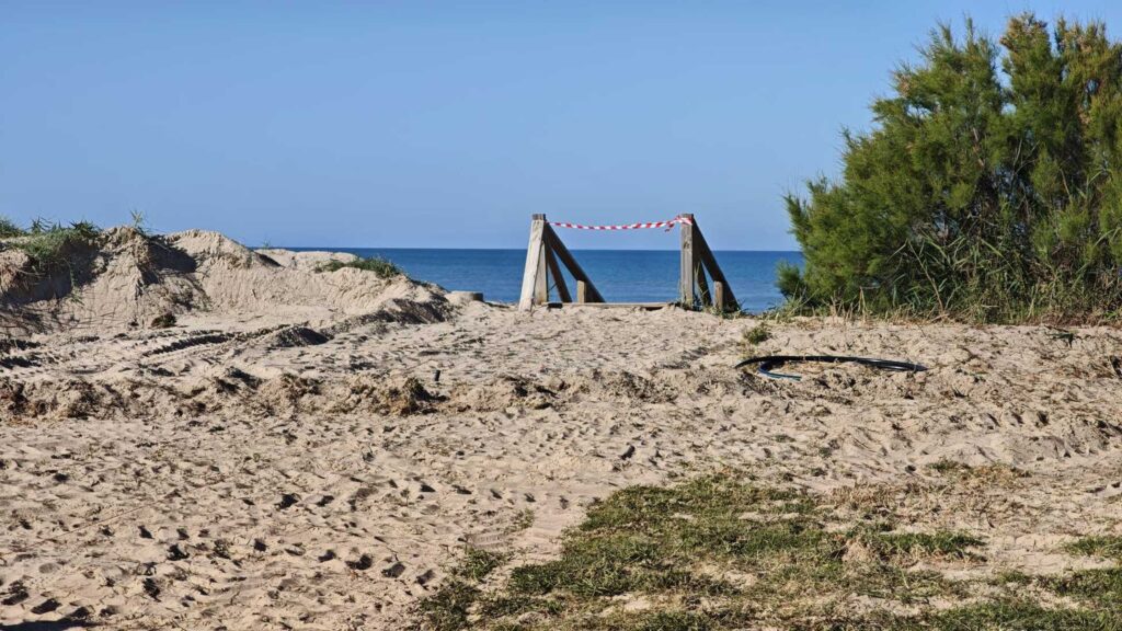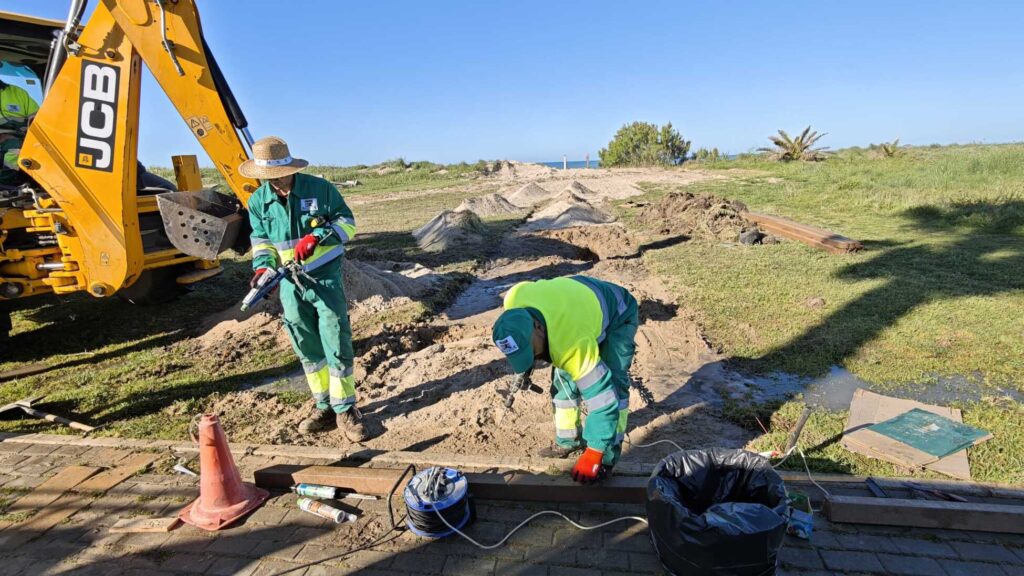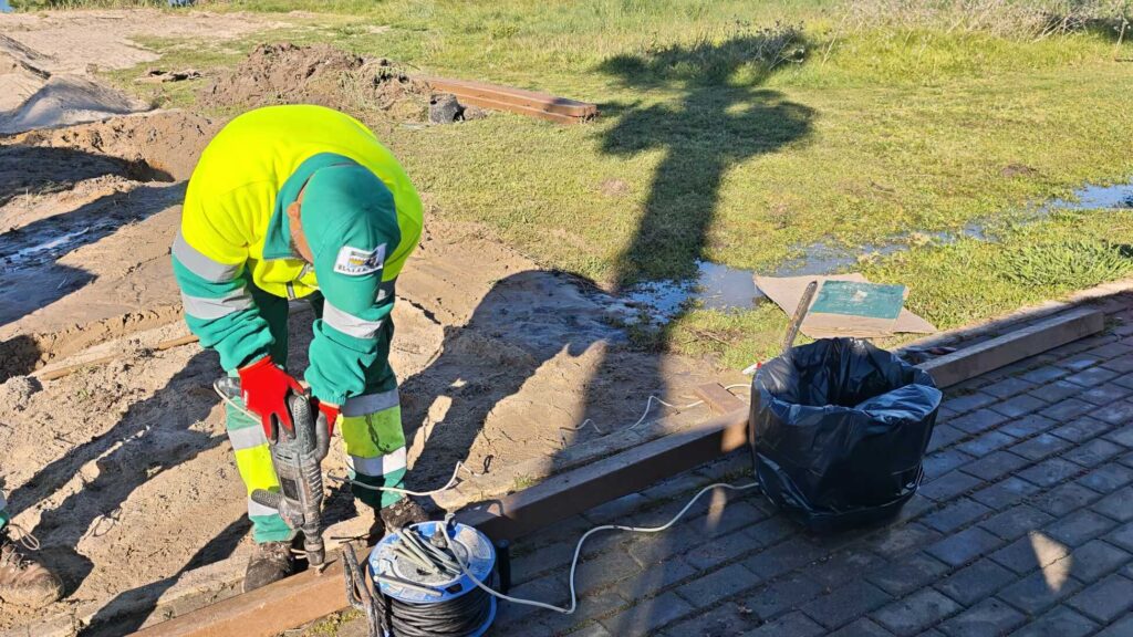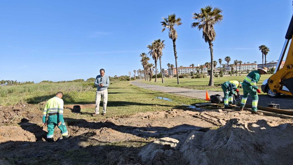 La actuación en el acceso Nº 14, uno de los más frecuentados por su ubicación, sigue el mismo patrón que en los 12 restantes en los que se ha actuado. Los trabajadores de la EUC han retirado las maderas antiguas, han llevado a cabo el replanteo de la nueva pasarela, que es algo más ancha que la que existía, y tras homogeneizar y asegurar el terreno para su fijación, se procederá en estos días a la colocación de los nuevos listones de material de plástico reciclado que es mucho más duradero y permitirá que su vida útil no solo sea mayor, sino que precise de menos cuidados.