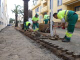 Los trabajos de recolocación de la solería de piedra en Juan Carlos I continúan