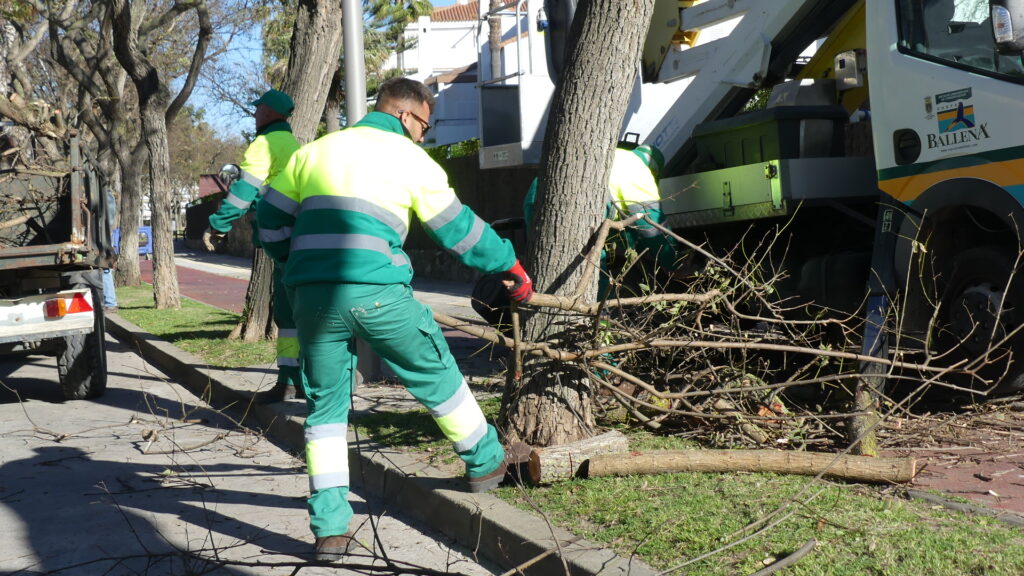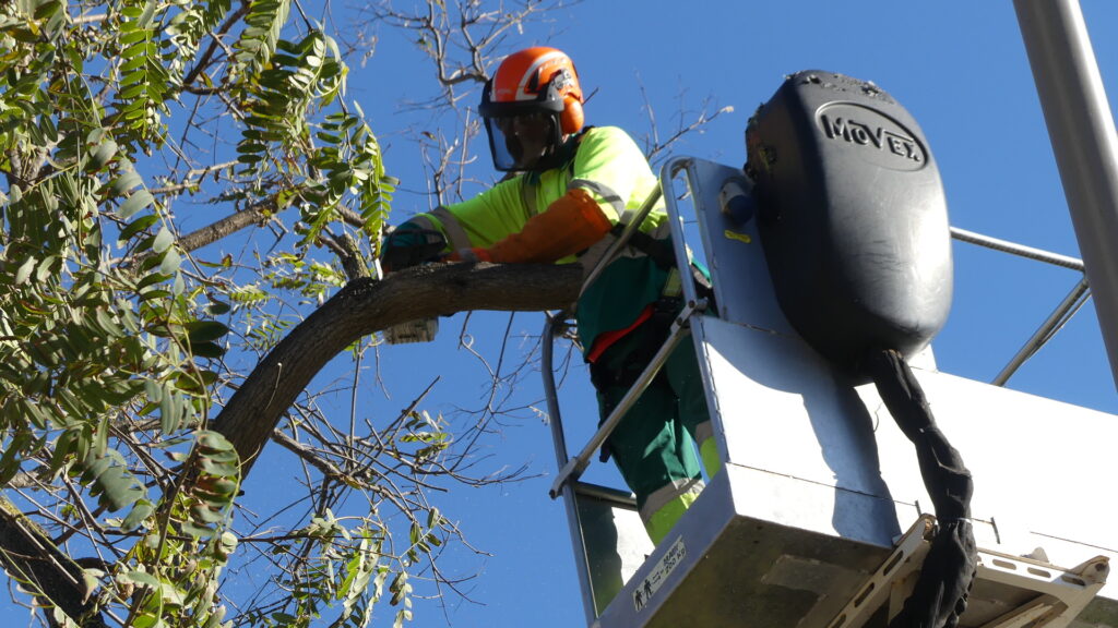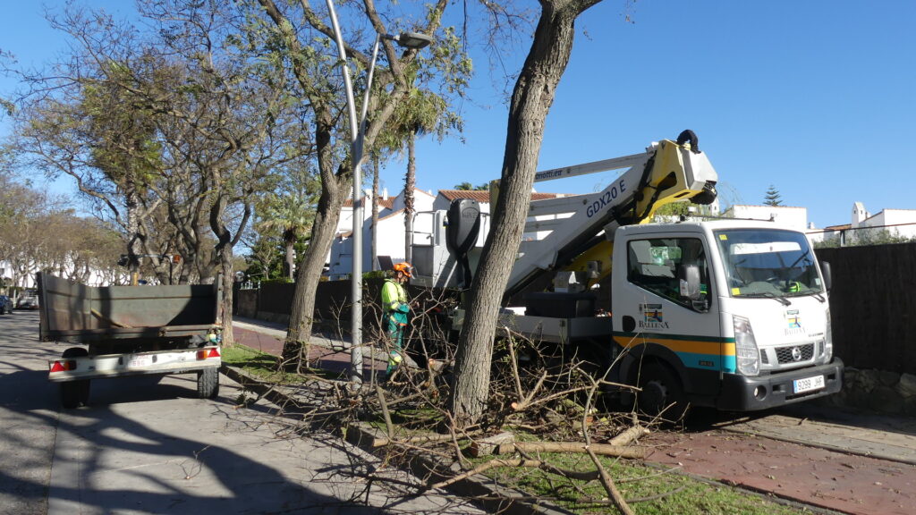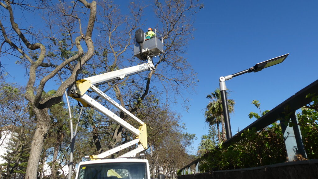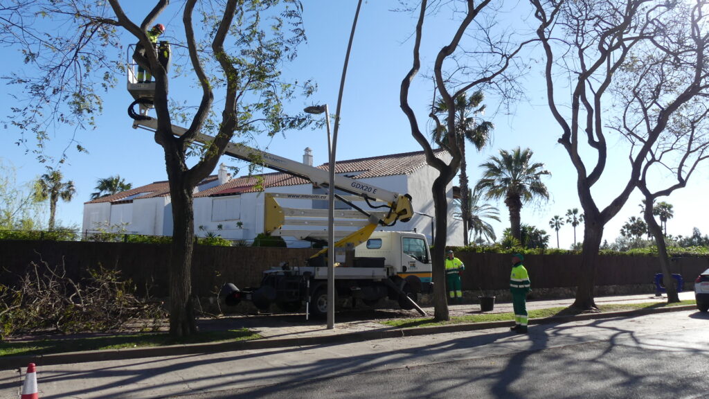Los trabajadores de la Entidad están llevando a cabo trabajos de control de la copa de estos ejemplares que por su crecimiento, pueden generar problemas a las comunidades de vecinos, ya que por su cercanía, acaban invadiendo la zona privada. Para evitar esas molestias, y también para favorecer una mejor visibilidad, ya que también se aclarea las copas de aquellos árboles cercanos a las luminarias que se pueden ver obstaculizadas por las ramas, se procede a estos trabajos.