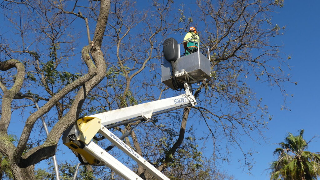 Poda de tipuanas en avenida Reina Sofía