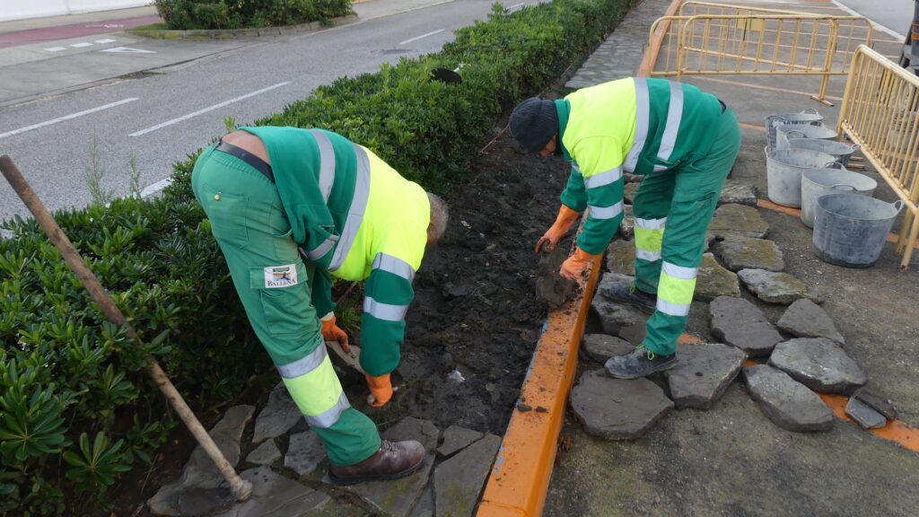 En base a los objetivos de accesibilidad, la Entidad ha ido sustituyendo este tipo de solería procediendo a homogeneizar el terreno, manteniendo parte del diseño con la piedra natural pero rellenando los huecos entre una y otra. De hecho, eso es lo que se está llevando a cabo en estas semanas, la retirada de la piedra original para regularizar el terreno y volver a colocarla fijada al suelo con mortero. Con ello se consigue un pavimento más firme y homogéneo, se elimina la posibilidad de que crezcan fácilmente malas hierbas entre las juntas y, por tanto, un tránsito más seguro para los peatones.