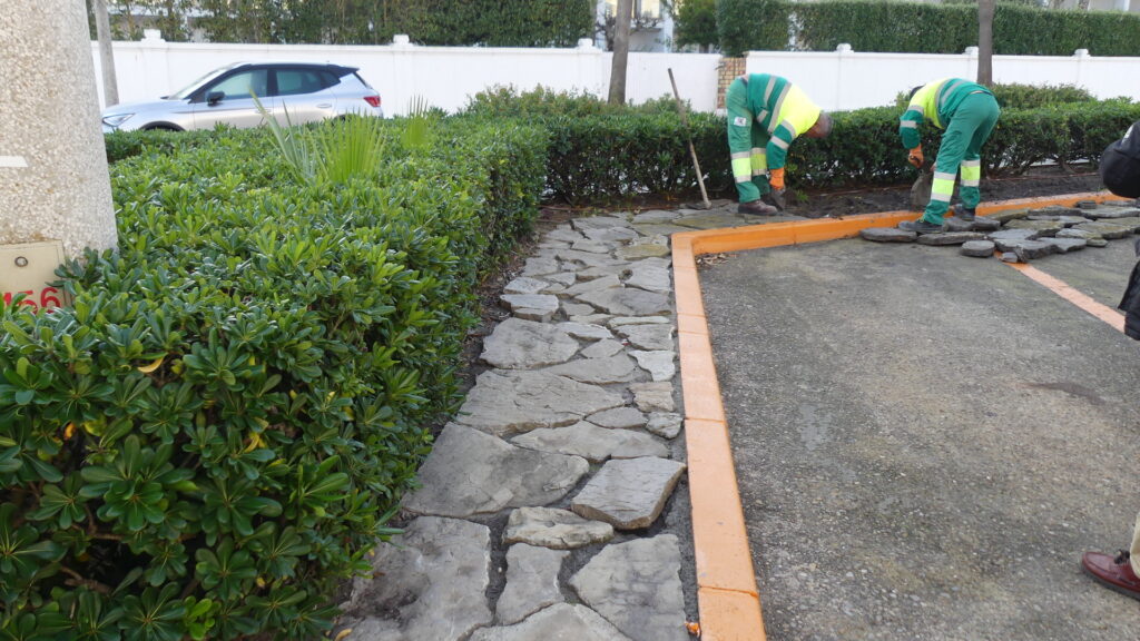 23 de enero de 2026Durante todo el mes de enero, la EUC de Costa Ballena está ejecutando trabajos de reparación de la solería de piedra que hay en la mediana de la avenida Juan Carlos I. Un tipo de solería que en realidad, resulta algo incómoda de transitar, ya que originalmente, lo que se hizo fue colocar piedra natural sobre el terreno sin tratar, provocando cierto riesgo para los usuarios ya que la separación de las piedras constituyen un firme poco regular. Además, ese diseño inicial facilita el crecimiento de malas hierbas, convirtiendo los tramos que presentan aún este planteamiento como caminos poco seguros.