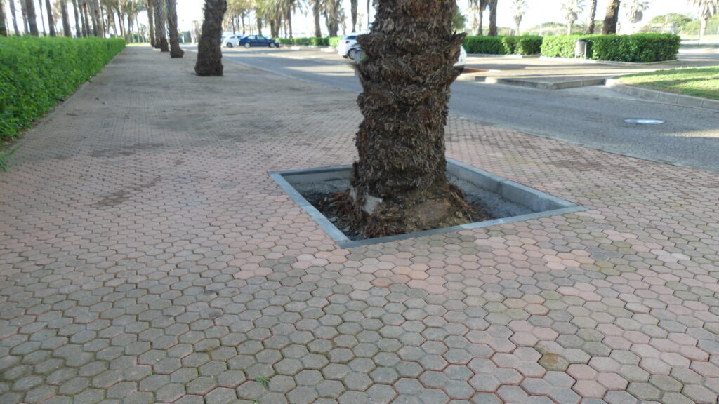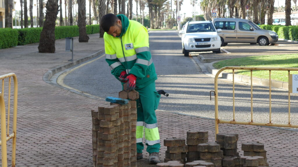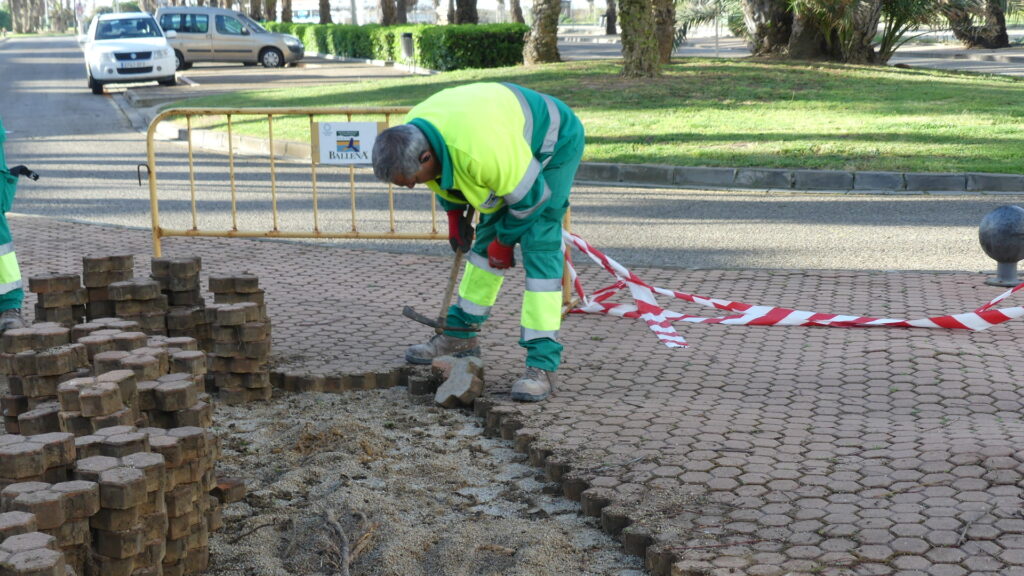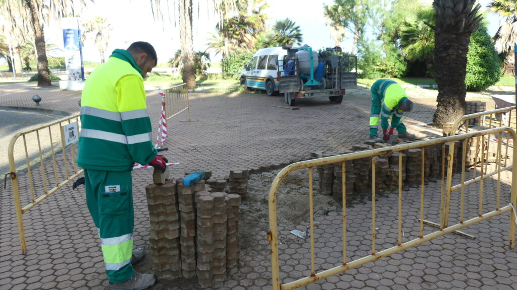 Tras detectar previamente estas irregularidades en el acerado, desde la Entidad se programó esta actuación para actuar lo antes posible en corregirlas. Los trabajos se centran en puntos concretos localizados, en su mayoría, cercanos a las palmeras, ya que el crecimiento de las raíces de este arbolado es el que genera el levantamiento de algunas losas y con ello, los desniveles.