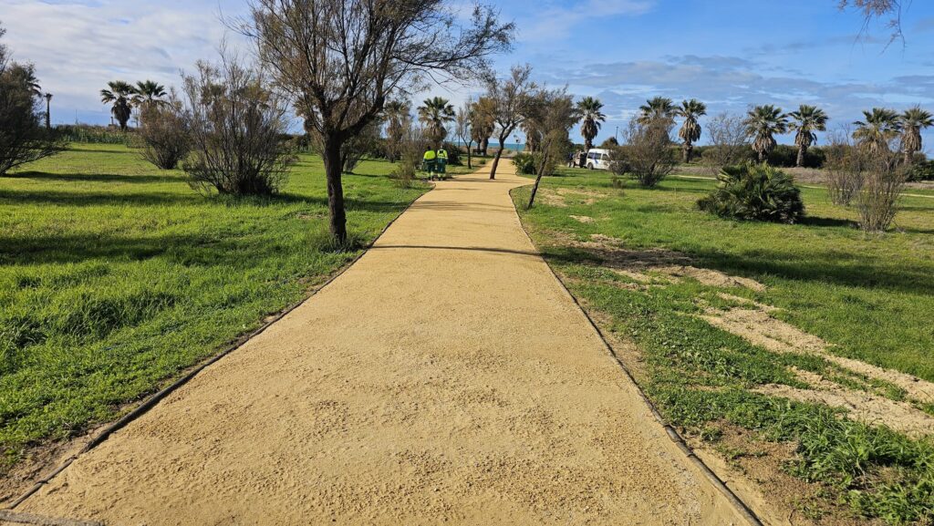 26 de noviembre de 2025Durante la segunda quincena del mes de noviembre la EUC de Costa Ballena está llevando a cabo, cumpliendo con el plan de actuaciones semestrales previsto para el ejercicio 2025, el resanado del camino de albero que comunica la comunidad de propietarios Nuevo Oasis Fase I con el Paseo Litoral y que cuenta con una longitud de 85 metros lineales. Se trata de una vía peatonal que, por sus características, se ve más afectada por el uso y el paso del tiempo, de modo que es necesario para su buen mantenimiento, realizar actuaciones que corrijan las deficiencias y le devuelvan la regularidad necesaria que debe tener el terreno para seguridad de los peatones.