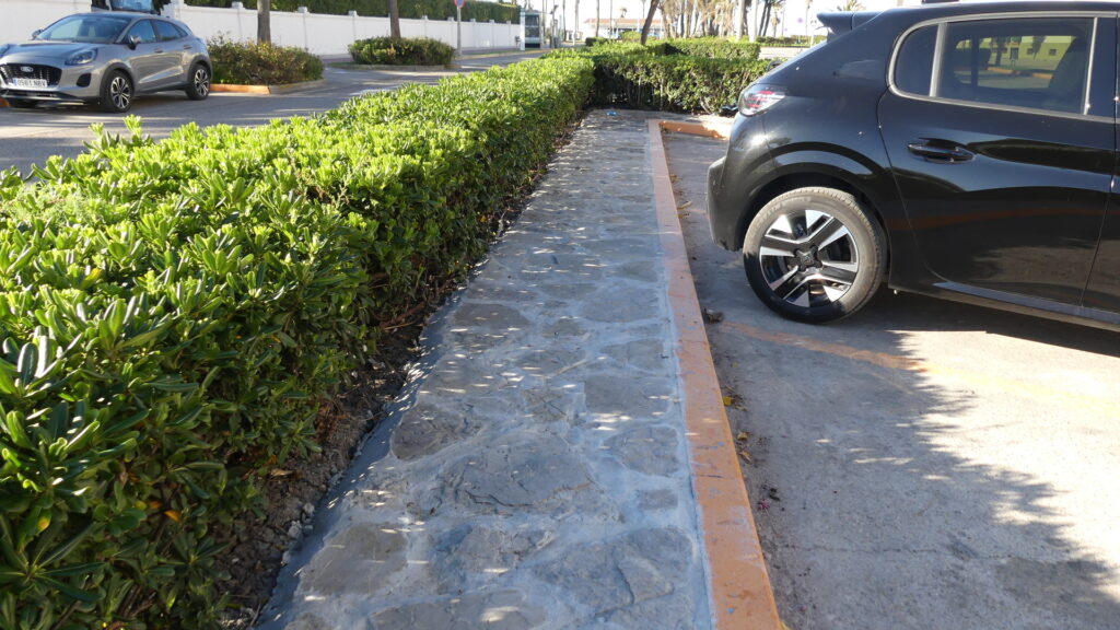 Tras dos meses, todo el paso peatonal que linda con la mediana de esta avenida principal de Costa Ballena ha quedado mejorado dotando de mayor seguridad a quienes transiten por él. Aunque se ha respetado el diseño original, utilizando la misma piedra que se colocó en su día,  el resultado para los viandantes es visible.