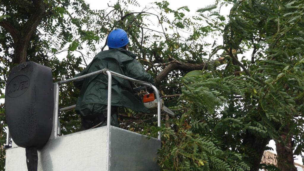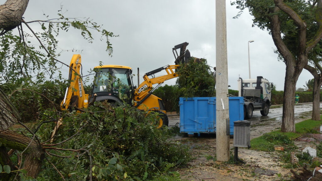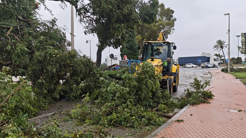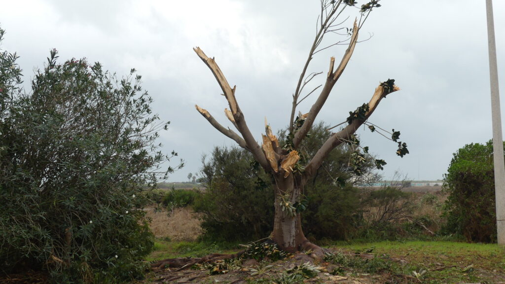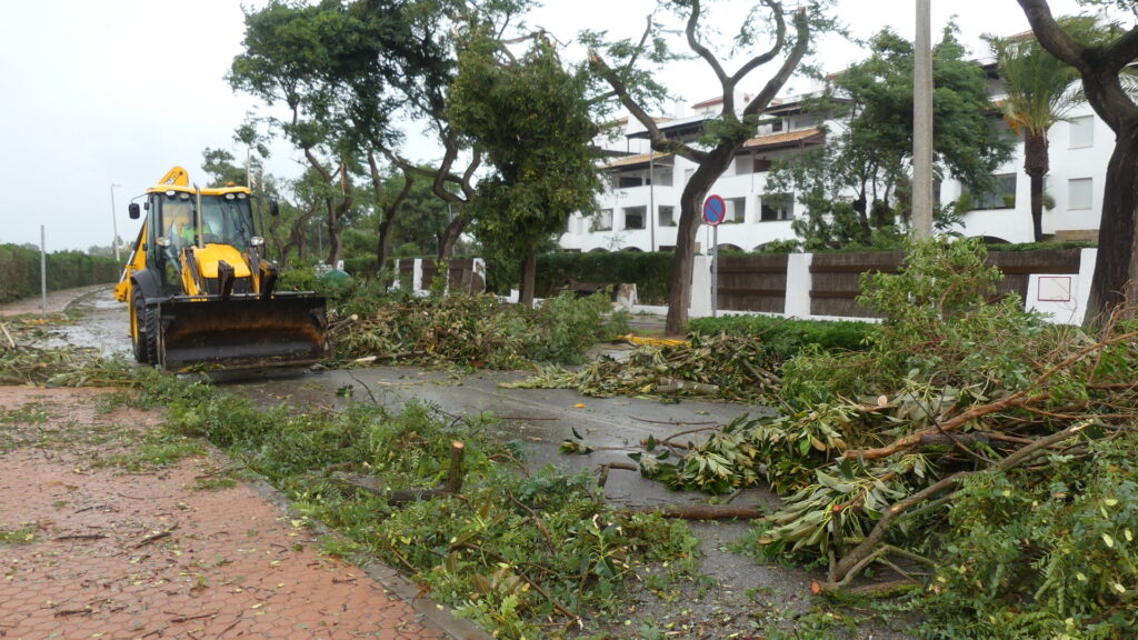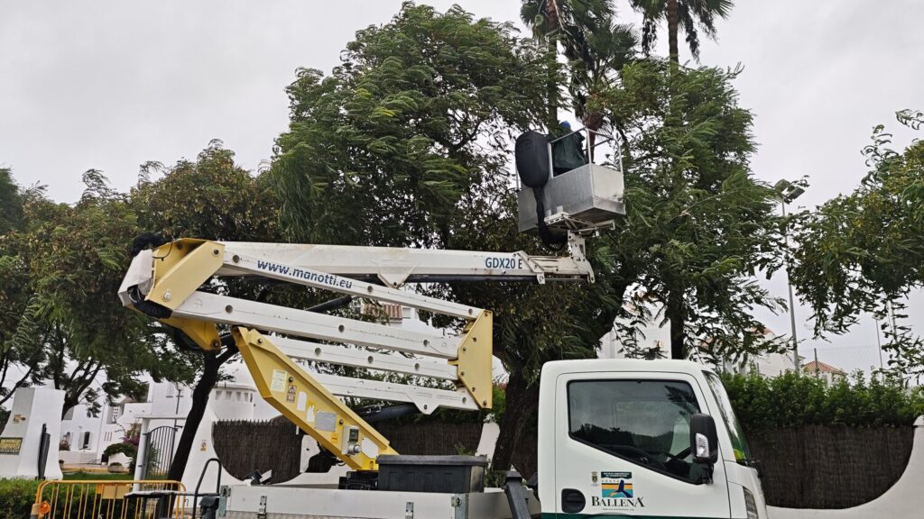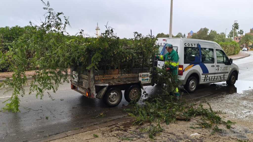 Tras el paso de la manga marina se han podido ver los numerosos árboles afectados, la mayoría, con ramas tronchadas o a punto de hacerlo, lo que genera una situación de peligro que ha llevado desde primera hora a la EUC, en coordinación con la delegación de Parques y Jardines del Ayuntamiento de Rota, a actuar de forma inmediata, asegurando todos aquellos ejemplares que se han visto dañados.