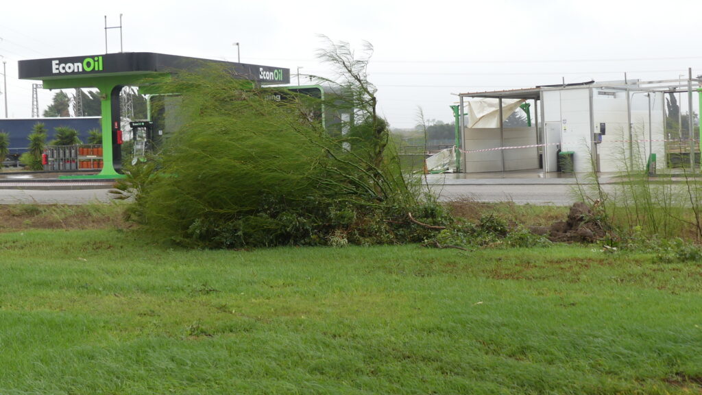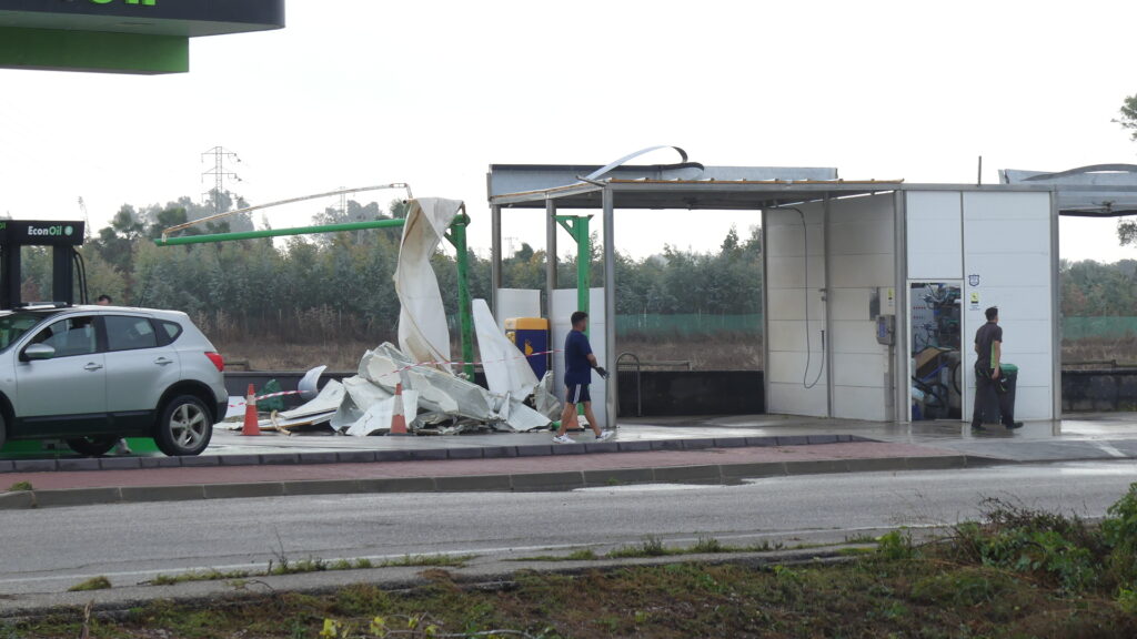 Con la luz del día, se han podido ver mejor los estragos de esta manga marina, que se ha llevado por delante el techo de la gasolinera y la zona de lavado de coches, ha tumbado la marquesina de autobús y ha provocado serios destrozos en la valla perimetral de la comunidad de propietarios «Los ánsares», sin duda, la más afectada, con varios metros de vallado reventados. Se suman algunas señales de tráfico tumbadas y alguna cartelería doblada, sin que afortunadamente, se hayan registrado daños personales.